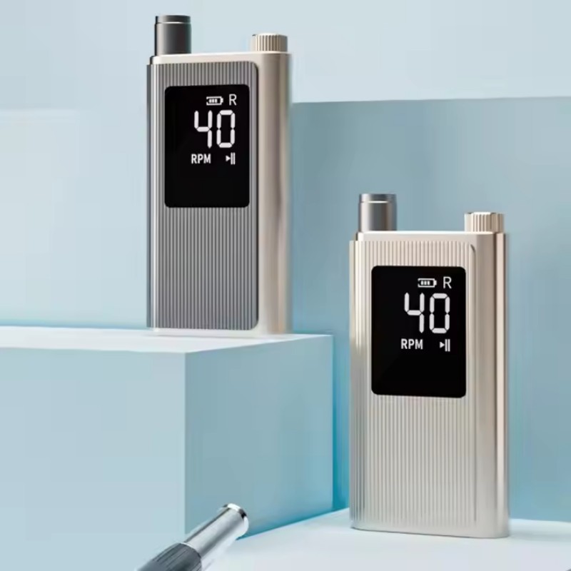 Skjermdesignet til denne 40 000 rpm høyhastighets profesjonelle spikerboremaskinen har en av/på-bryter og forover/bakover rotasjon for totalt én-knapps aktivering, en hurtigladekontakt nederst, en utskiftbar borekontakt på toppen, og en tre-posisjons justerbar hastighet for å møte en rekke behov.