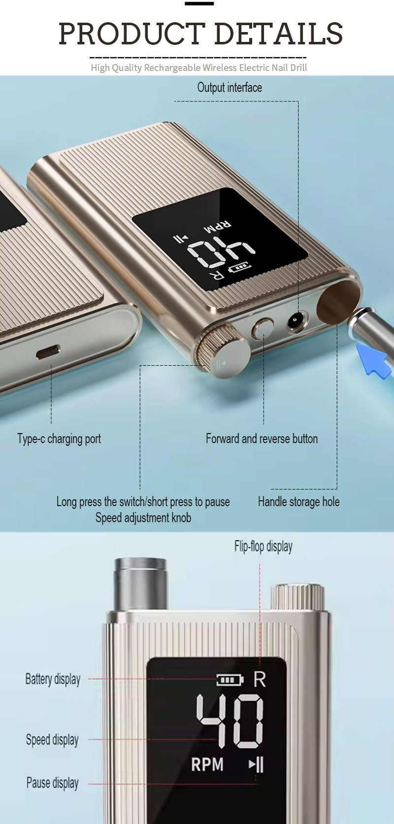 | 40 000 RPM High-Speed Professional Nail Drill Detaljer |