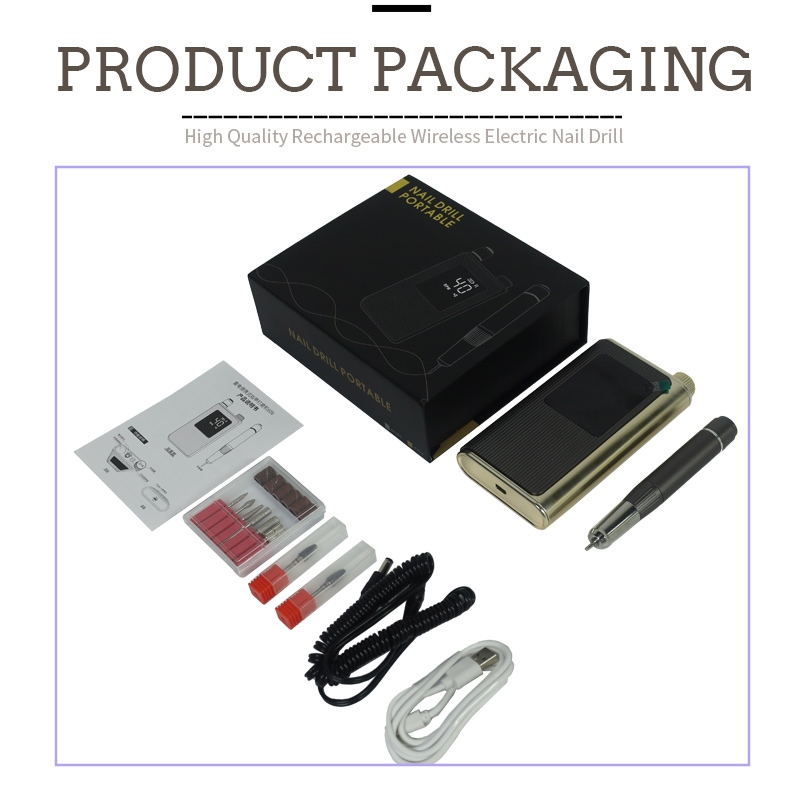 Innholdet i denne 40 000 rpm høyhastighets profesjonelle spikerborepakken har et slipepennprodukt, en USB-ladekabel, en produktbruksanvisning og en lett og bærbar boks.
