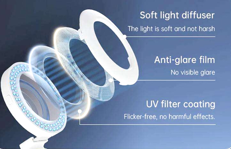Denne clip-on-fotograferingslampen har en elegant og raffinert design, og avgir en mild, blendende belysning som simulerer det myke, naturlige lyset fra daggry. Den er egnet for fotograferingslys og lyser opp motivet ditt vakkert.