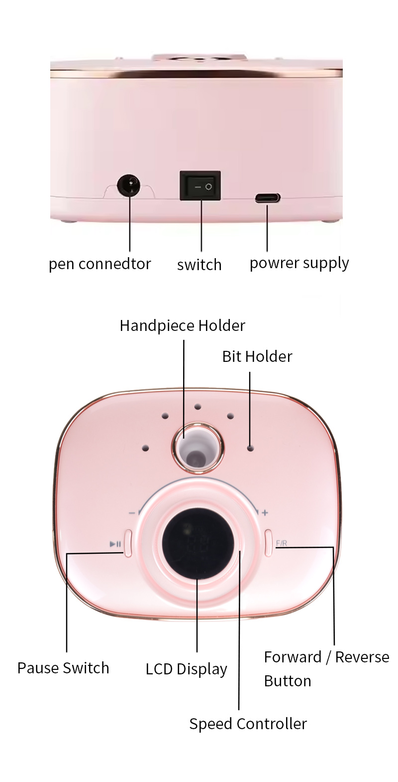 Spikerborsett Elektrisk for å fjerne gellakk 65w 35000rpm