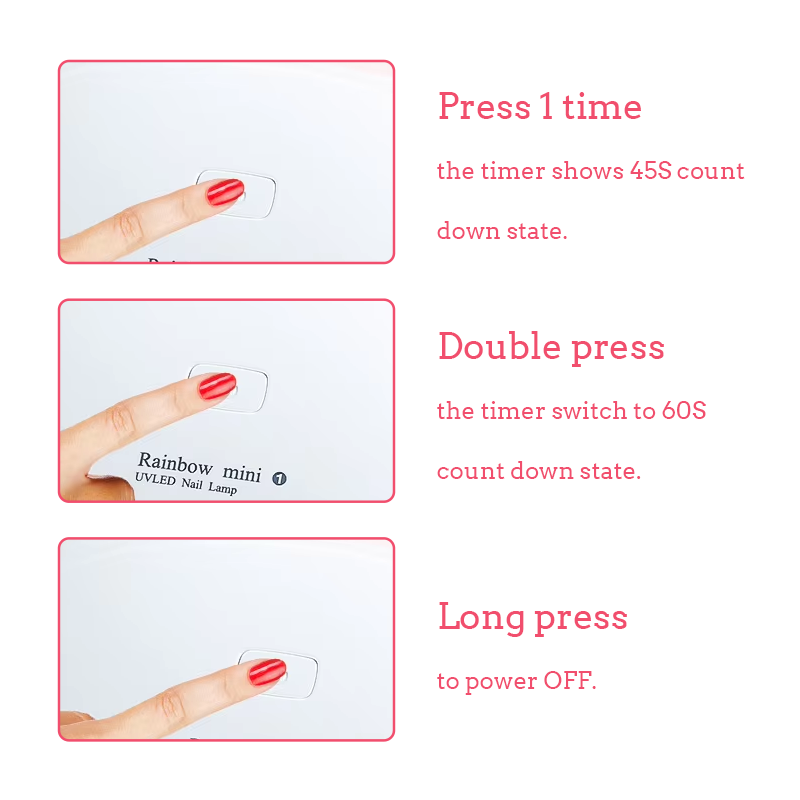 한국어Shenzhen Ruina Optoelectronics Co., Ltd., som Kinas ledende produsent, leverandør og eksportør av Compact Gel Nail Drying Lamp, opprettholder konsekvent filosofien om å forfølge perfekt kvalitet. Denne forpliktelsen har gitt våre hjemmebruk UV-klebende spikerlamper tilliten til mange kunder. Eksepsjonell design, førsteklasses råvarer, enestående ytelse og svært konkurransedyktige priser – dette er nøyaktig hva hver kunde forventer, og hva vi leverer. Selvfølgelig er omfattende ettersalgsservice like uunnværlig.
