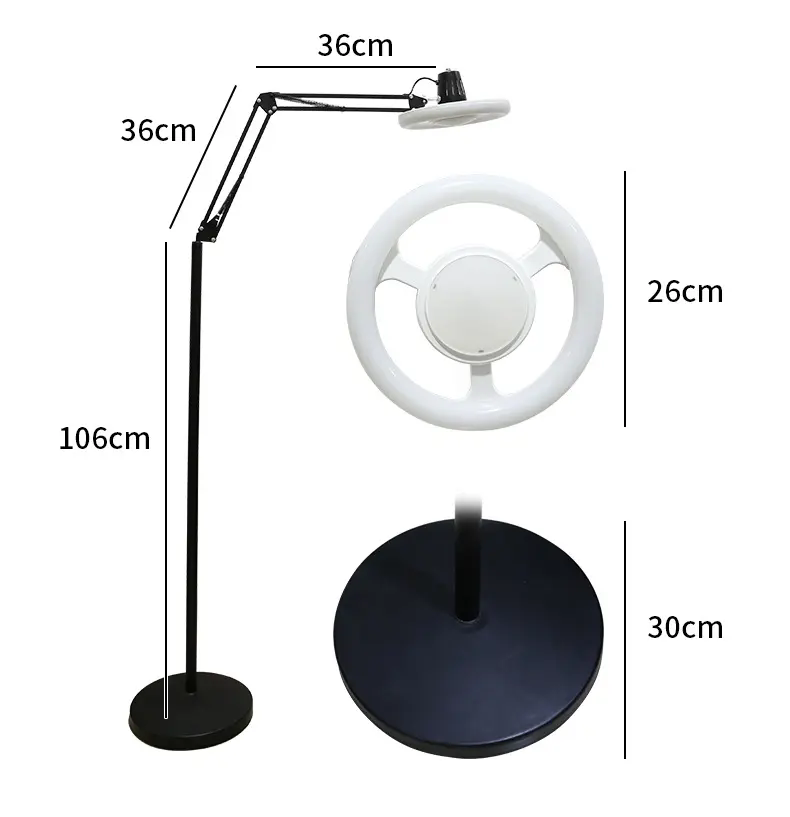 Høyden på produktet er 136 cm, bredden på chassiset er 25 cm, lengden og bredden på lampeskjermen er 13 cm, som når som helst kan demonteres for å forkorte høyden på lampen, enten det er i stuen, soverommet, studierommet for å si det ser bra ut.