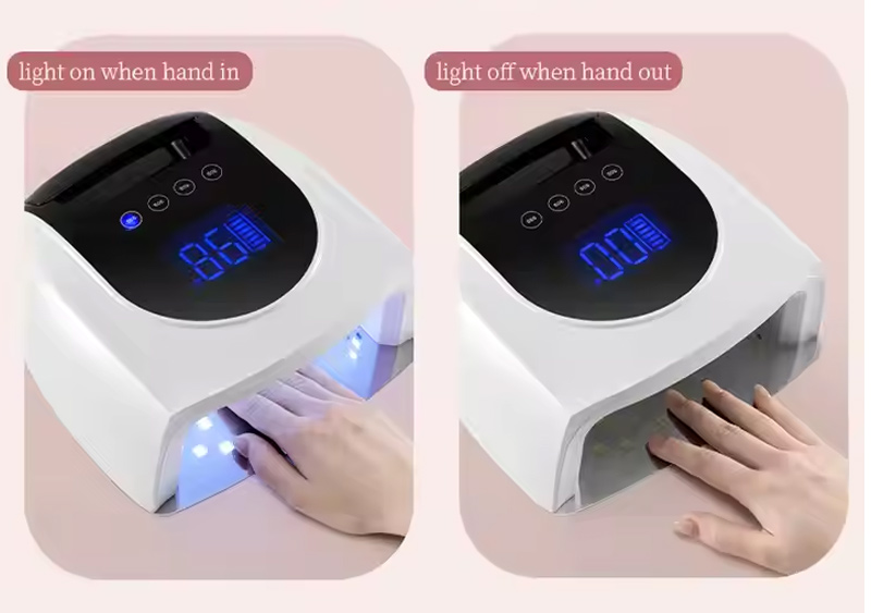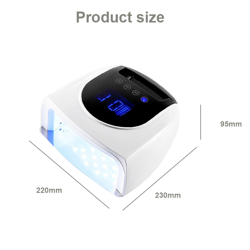 Produktet sikrer jevn limtørking uten krymping. De doble lyskildene gir skånsom oppvarming for å forhindre misfarging av hender og belastning på øynene, egnet for både hender og føtter, og gir bemerkelsesverdig raskt tørkende resultater.