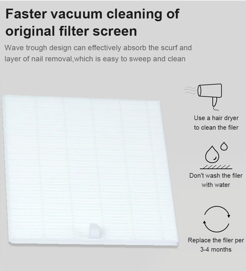 3, Støvfilter kan skiftes regelmessig for å sikre effekten.
