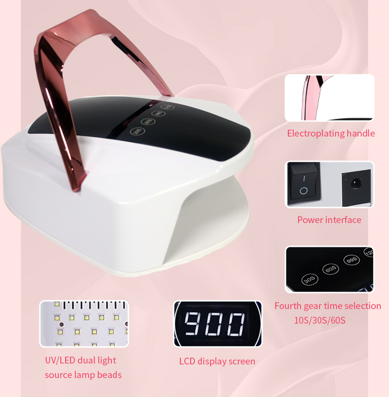 Produktet sikrer jevn limtørking uten krymping. De doble lyskildene gir skånsom oppvarming for å forhindre misfarging av hender og belastning på øynene, egnet for både hender og føtter, og gir bemerkelsesverdig raskt tørkende resultater.