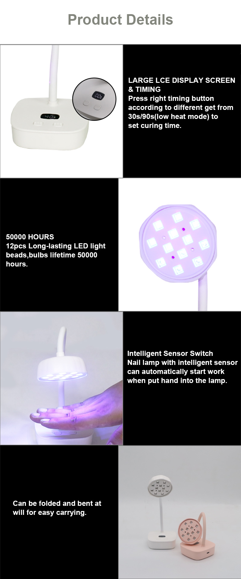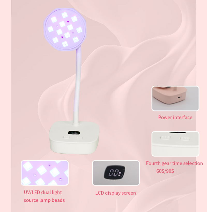 Produktet sikrer jevn limtørking uten krymping. De doble lyskildene gir skånsom oppvarming for å forhindre misfarging av hender og belastning på øynene, egnet for både hender og føtter, og gir bemerkelsesverdig raskt tørkende resultater.