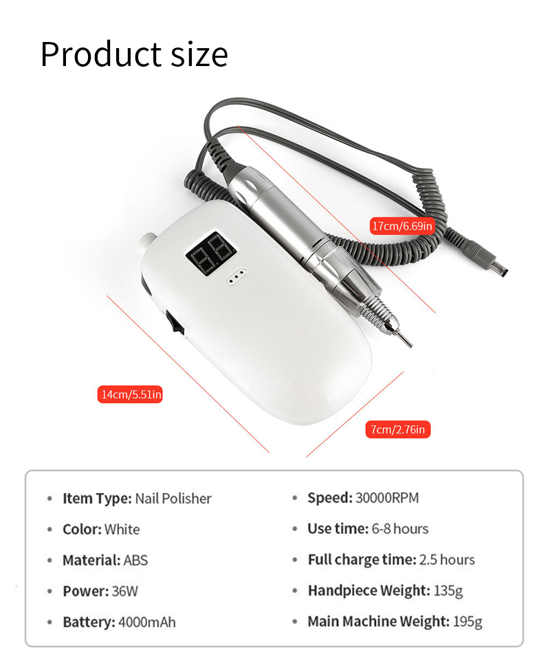 Bærbart spikerborsett elektrisk med kraftig motor 65w 35000rpm