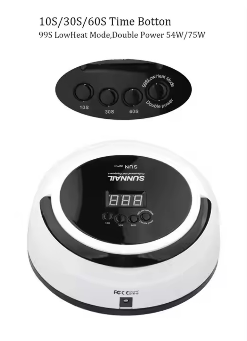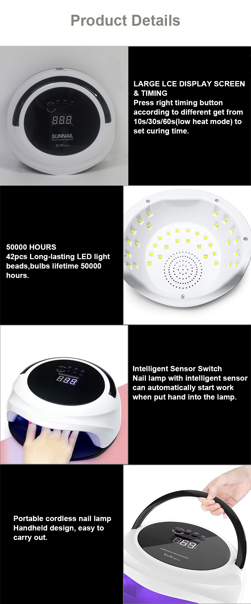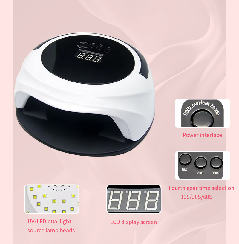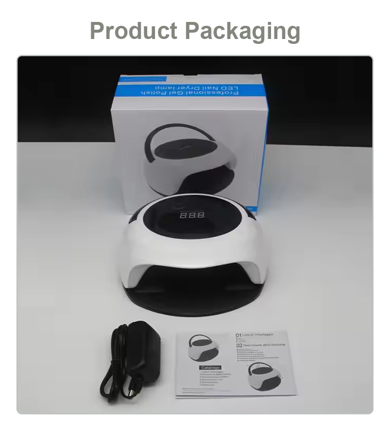 Spikertørkelampen med automatisk sensorfunksjon sørger for jevn limtørking uten krymping. De doble lyskildene gir skånsom oppvarming for å forhindre misfarging av hender og belastning på øynene, egnet for både hender og føtter, og gir bemerkelsesverdig raskt tørkende resultater.