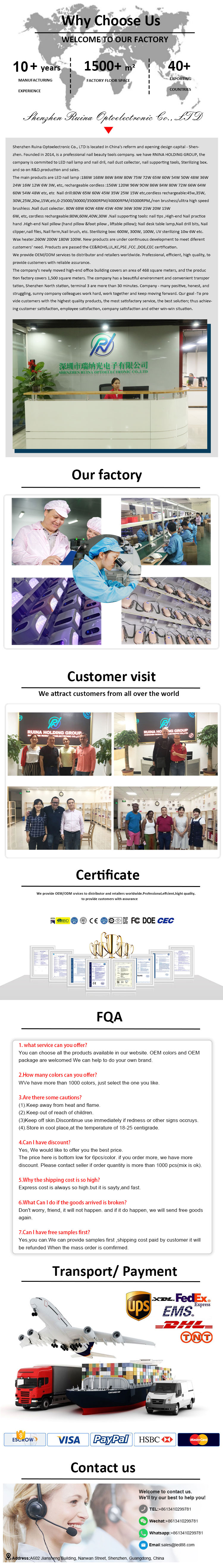 Produktet sikrer jevn limtørking uten krymping. De doble lyskildene gir skånsom oppvarming for å forhindre misfarging av hender og belastning på øynene, egnet for både hender og føtter, og gir bemerkelsesverdig raskt tørkende resultater.