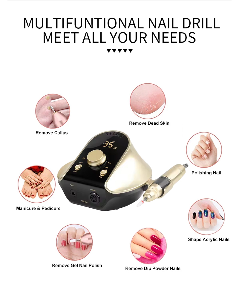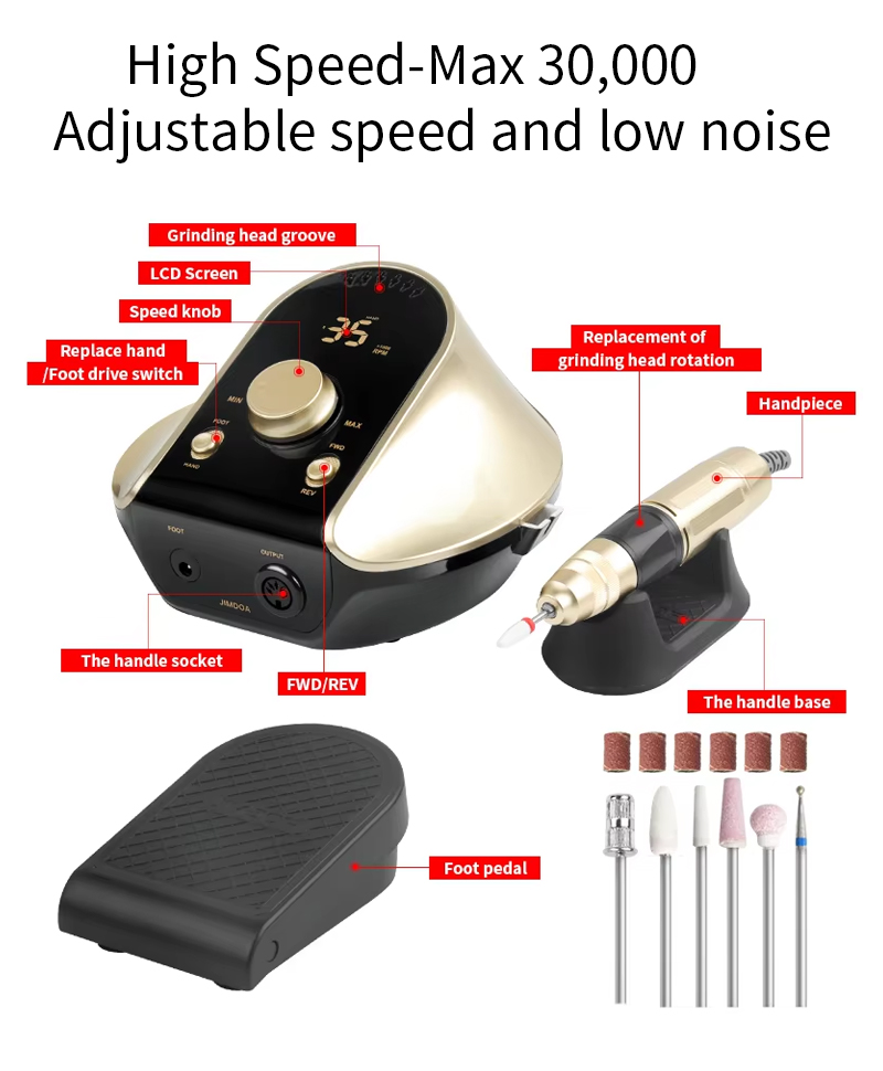 Spikerborsett Elektrisk for å fjerne gellakk 65w 35000rpm