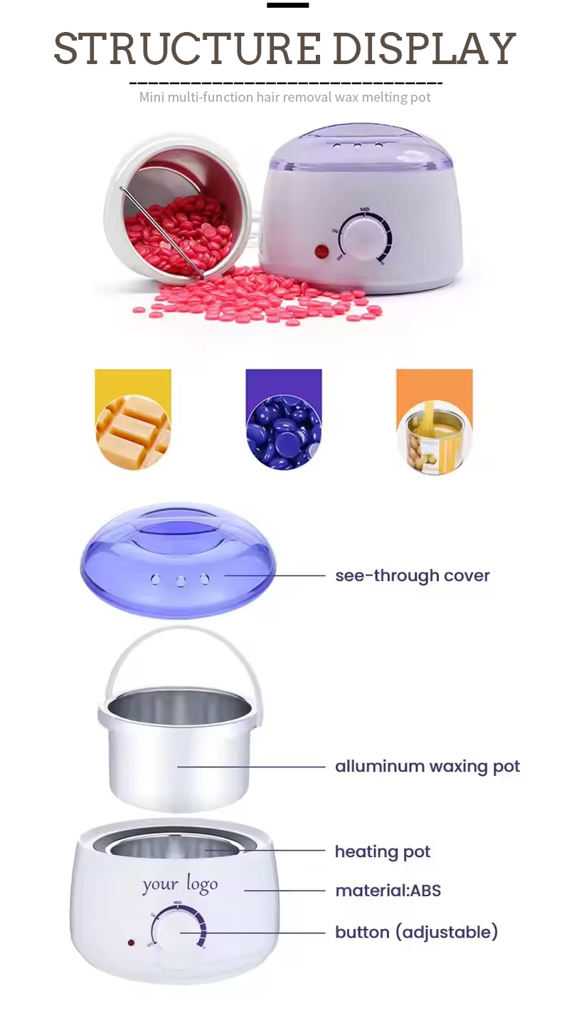 En stor kapasitet til å smelte et bredt spekter av voksbønner.ABS plastskall, motstandsdyktig mot høye temperaturer, skallet er mer blankt.