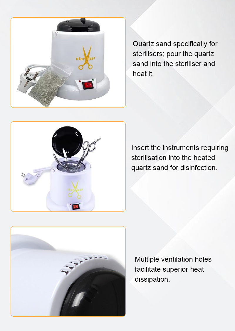 Denne sterilisatoren genererer først og fremst varme gjennom en varmering, og bruker høye temperaturer for desinfeksjon.