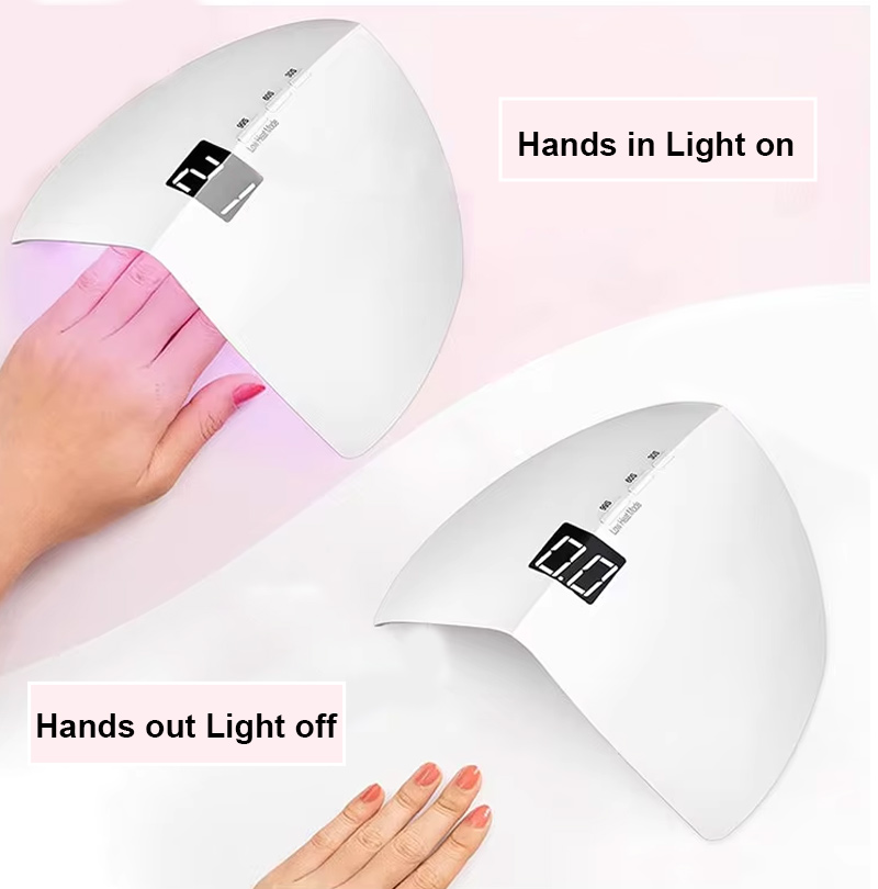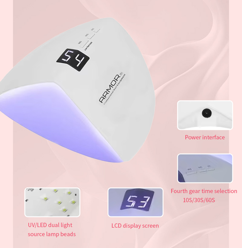 Produktet sikrer jevn limtørking uten krymping. De doble lyskildene gir skånsom oppvarming for å forhindre misfarging av hender og belastning på øynene, egnet for både hender og føtter, og gir bemerkelsesverdig raskt tørkende resultater.