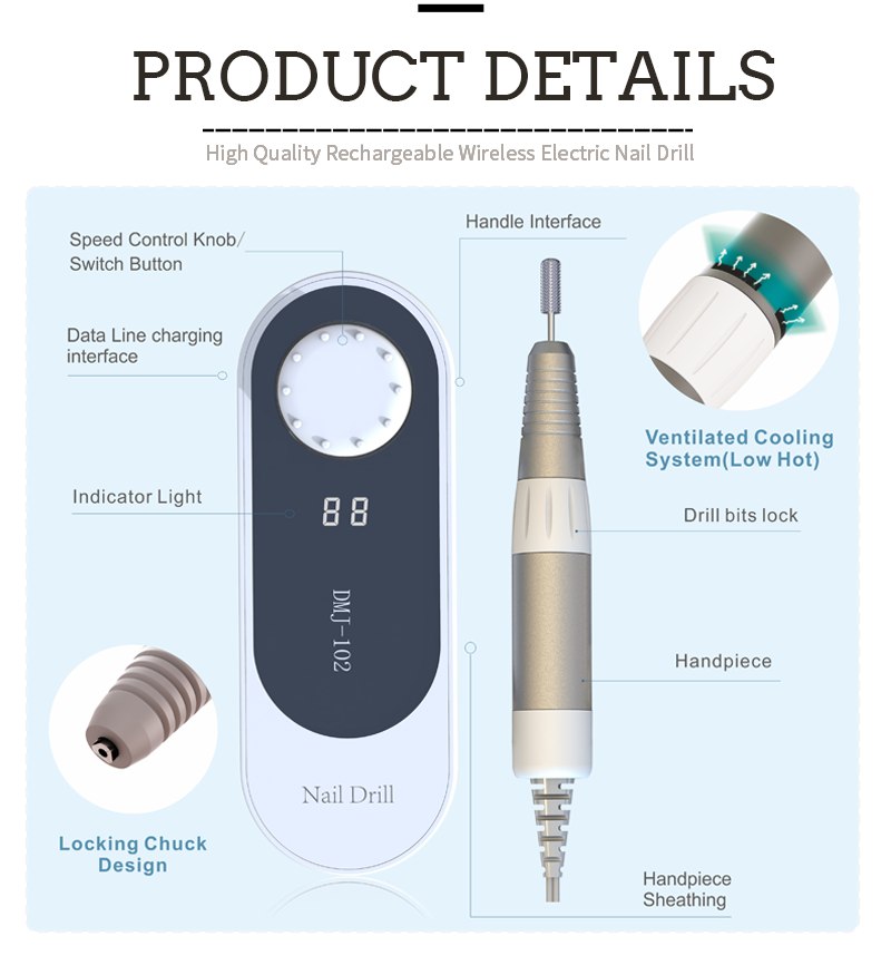 Bærbart spikerborsett elektrisk med kraftig motor 65w 35000rpm