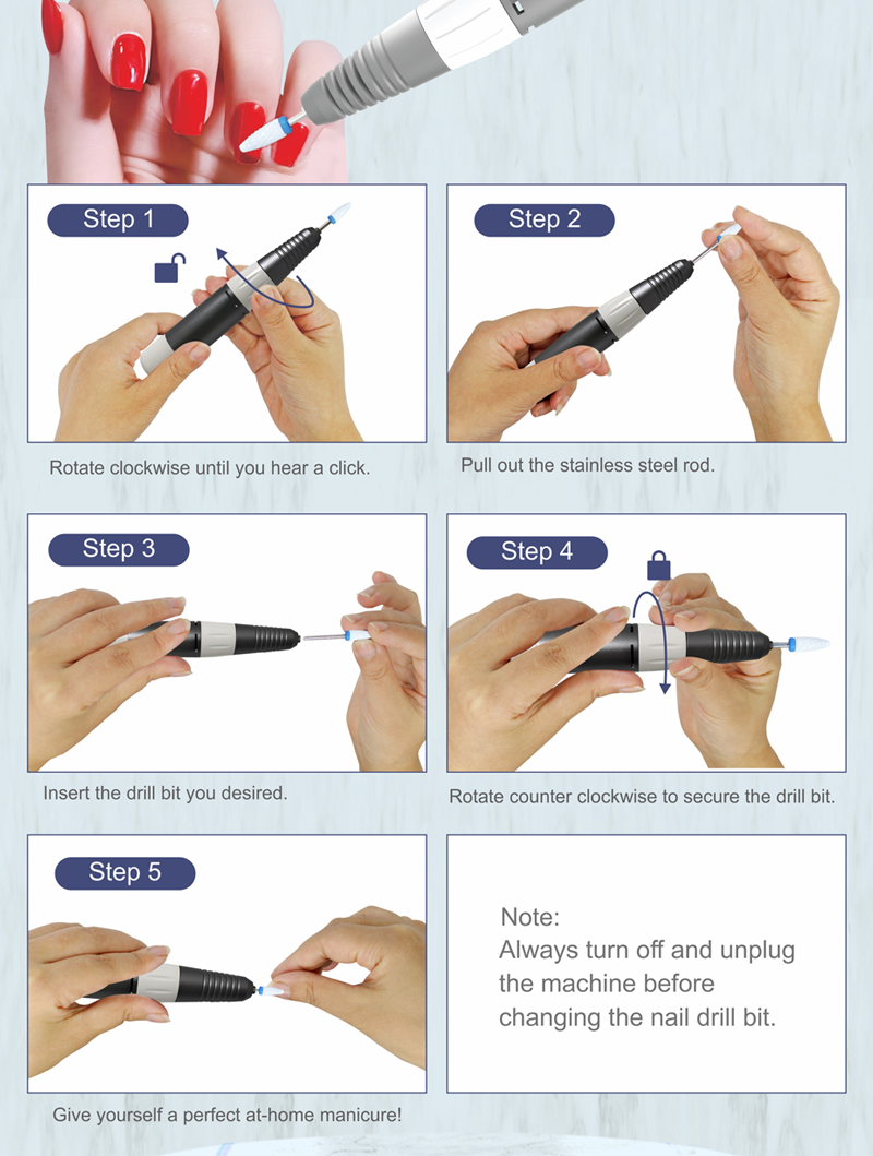 Spikerborsett Elektrisk for å fjerne gellakk 65w 35000rpm