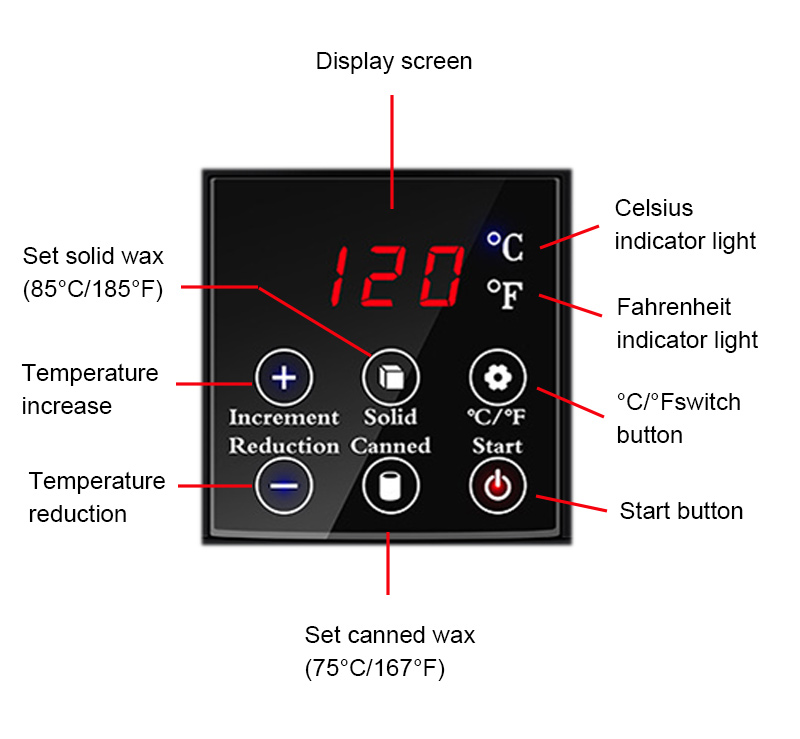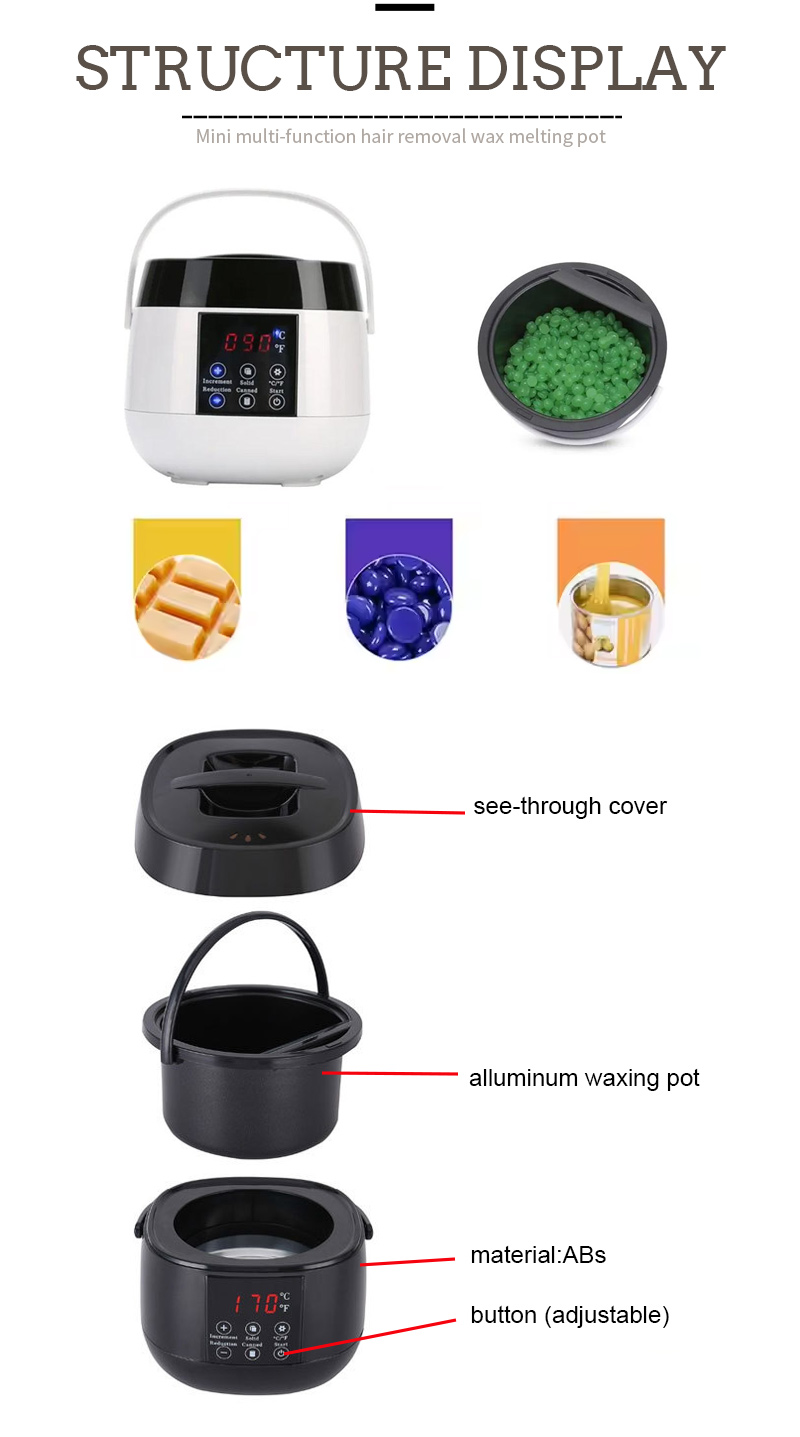 En stor kapasitet til å smelte et bredt spekter av voksbønner.ABS plastskall, motstandsdyktig mot høye temperaturer, skallet er mer blankt.
