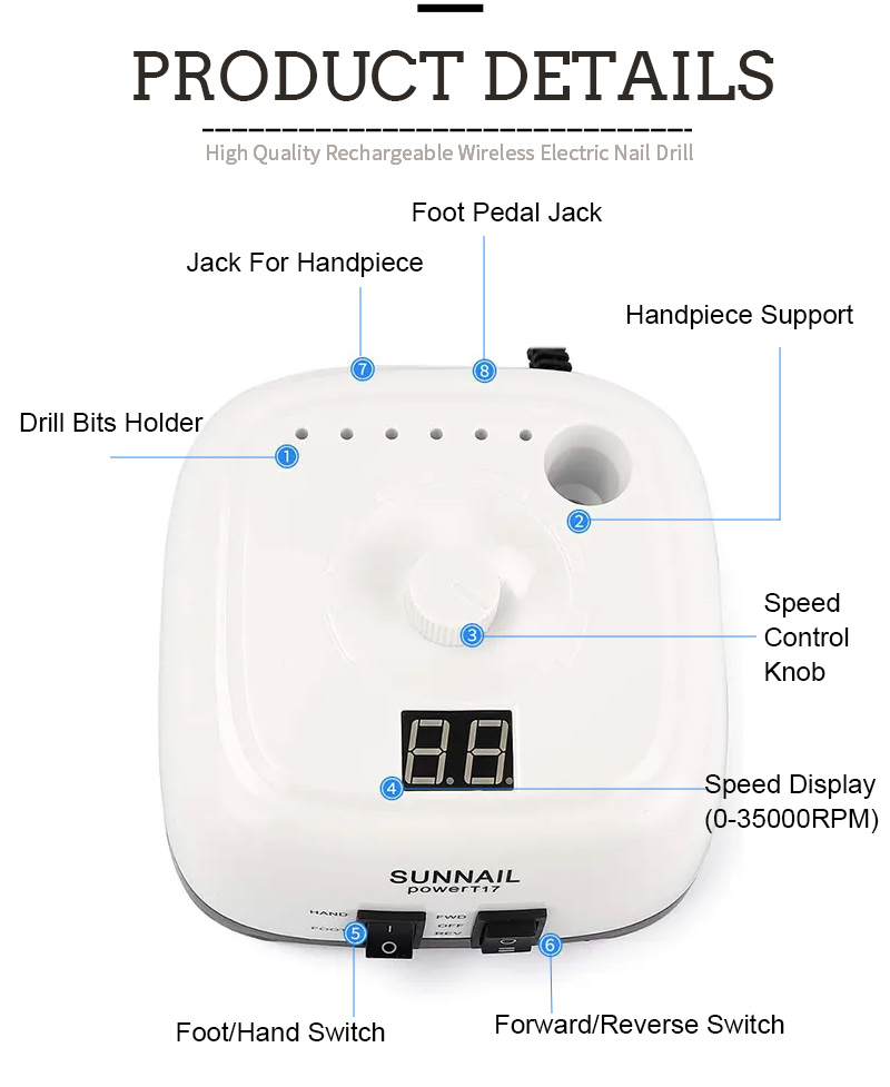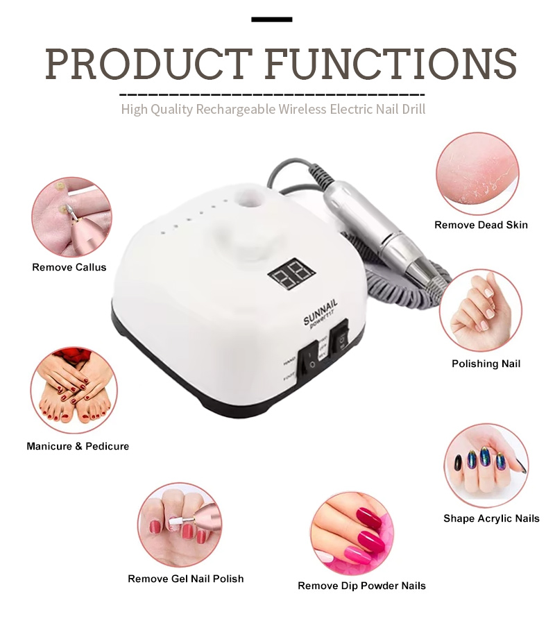 Produktfunksjon og anvendelse av T17 High Speed 35000 o / min neglelakkfjerner elektrisk neglefil