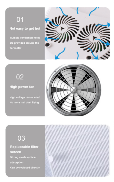 Trippelkombinasjon håndholdt neglelampe med pute har infrarød smart sensorteknologi som automatisk lyser opp når hendene nærmer seg og slås av når hendene beveger seg bort – eliminerer bryet med å trykke gjentatte ganger på knapper og sparer tid og krefter. Høyeffekt bakelim krever ingen lang ventetid, og sparer både tid og krefter.