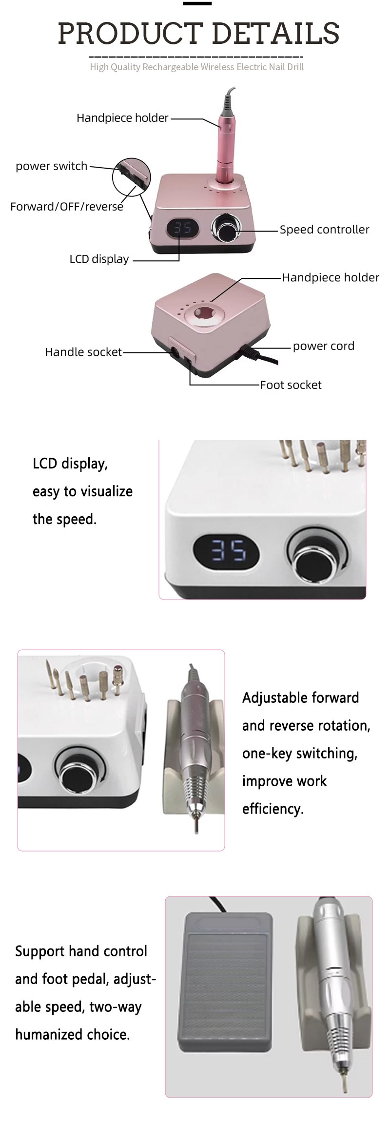 | Trådløs elektrisk spikerbor med 35 000 RPM-detaljer |